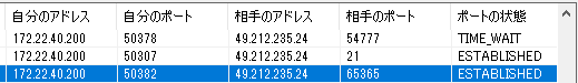 そこで、レンタルサーバに FTP 接続をかけているときの TCP ポートの使用状況を Port Viewer で調べた。