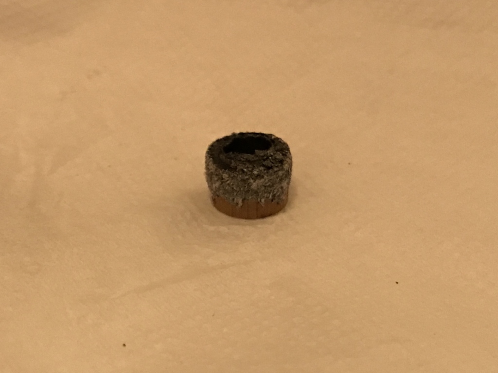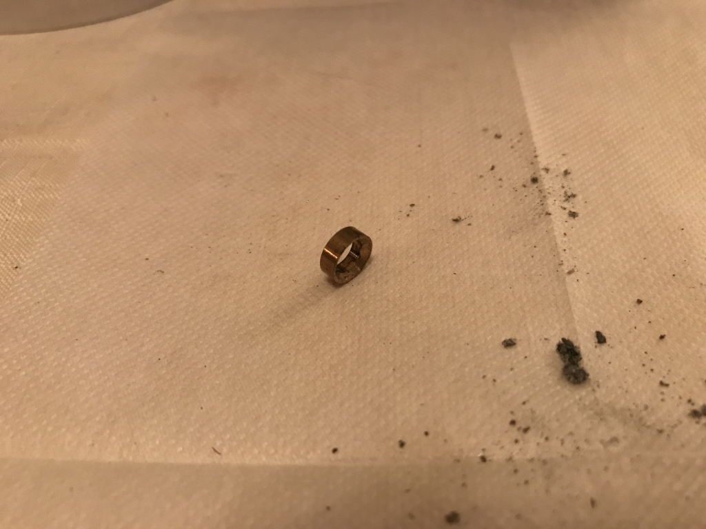 古いグラファイトパッキンとメタルリングが一体化したなにか。